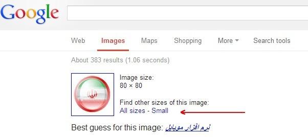 خیلی وقت ها یک عکس در سیستم دارید که حجمش کمه دوست دارید اندازه بزرگترش رو پیدا کنید. گوگل یک سیستم راحت برای این کار داره که کمتر کسی اطلاع داره. در این آموزش سه مرحله ای ببینید به چه راحتی می تونید این کار رو انجام بدید: ابتدا قسمت جستجوی عکس گوگل را می آورید به آدرس (www.google.com/imghp) حال مطابق شکل زیر عمل می کنید: اگر روی گزینه all size کلیک کنید اندازه های مختلفی از این عکس که توسط گوگل قبلا ایندکس شده، به شما نمایش داده می شود و می توانید اندازه دلخواه خود را ذخیره نمایید. به همین راحتی